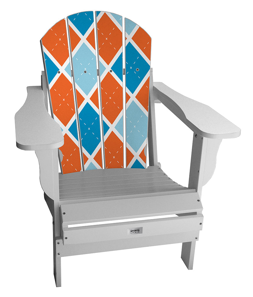 Our Adult custom sports chairs can hold upto 440 LBS, are made from recycled high density resin material. Equally matching the high quality of the chair with Professional Grade 3M Certified Vinyl Print technology with UV Stabilizers to prevent fading.